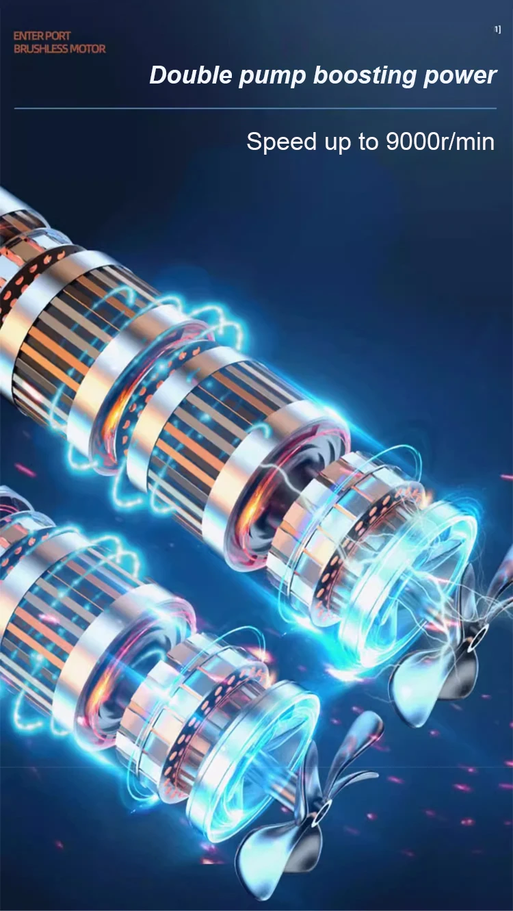 Infla en segundos. Su doble motor de alta potencia llena una llanta de auto en menos de