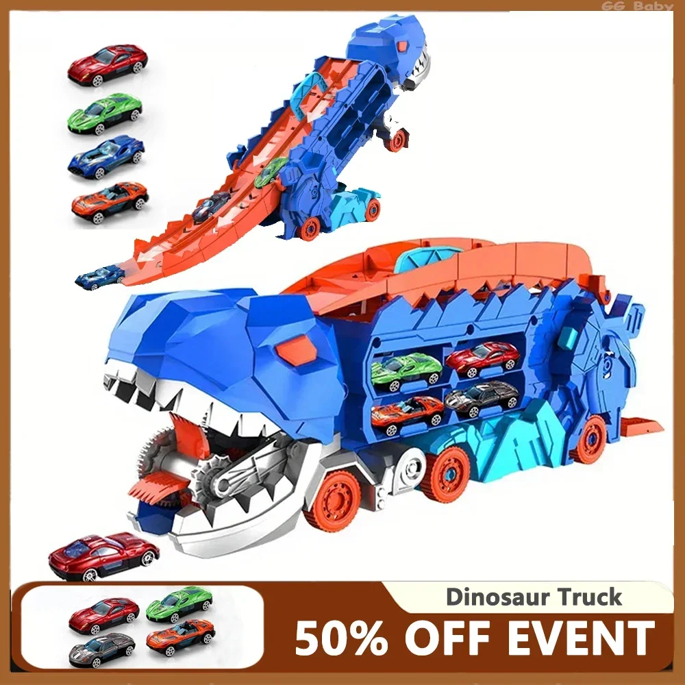 ¡Este camión no es solo un vehículo! Se convierte mágicamente en un impresionante T-Rex de pie que cautivará a tus hijos. Al desplegar la pista de carreras de 2 carriles de 20 pulgadas, el camión se transforma y lanza 2 autos de juguete al mismo tiempo. ¡Es una experiencia de juego que nunca olvidarán!