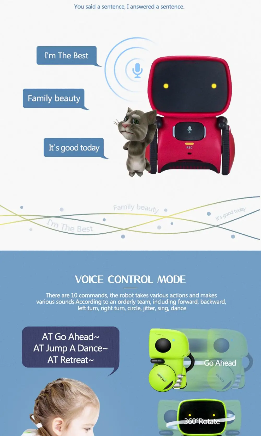 Puede responder preguntas básicas, contar cuentos, cantar canciones.