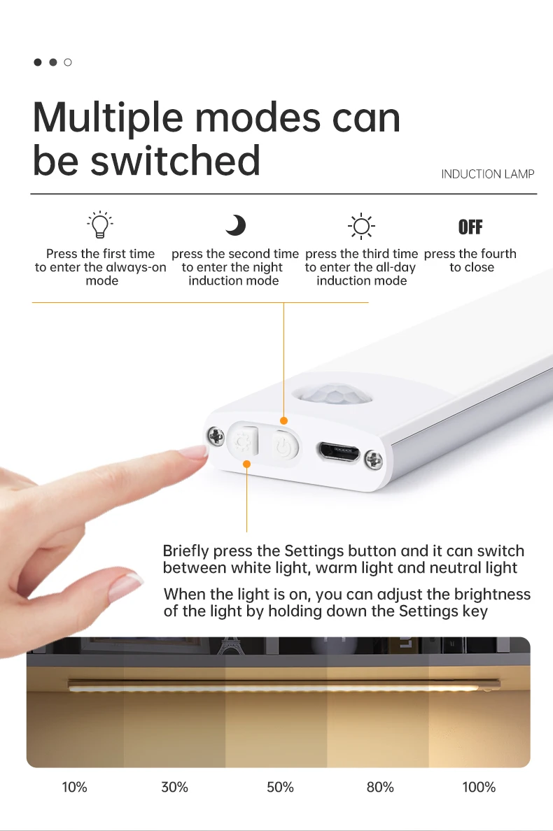 【Quick Charging and Long Battery Life】LED Closet Light with a built-in rechargeable lithium-ion battery, it only needs 3 hours to charge quickly, It can last for over 5 Hours under Always On Mode, if lighted eight times a day, it can last for about three months.