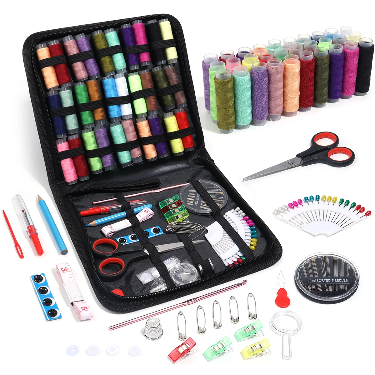 Incluye todo lo esencial: Hilos de colores, agujas, tijeras, cinta métrica, botones, dedal y
