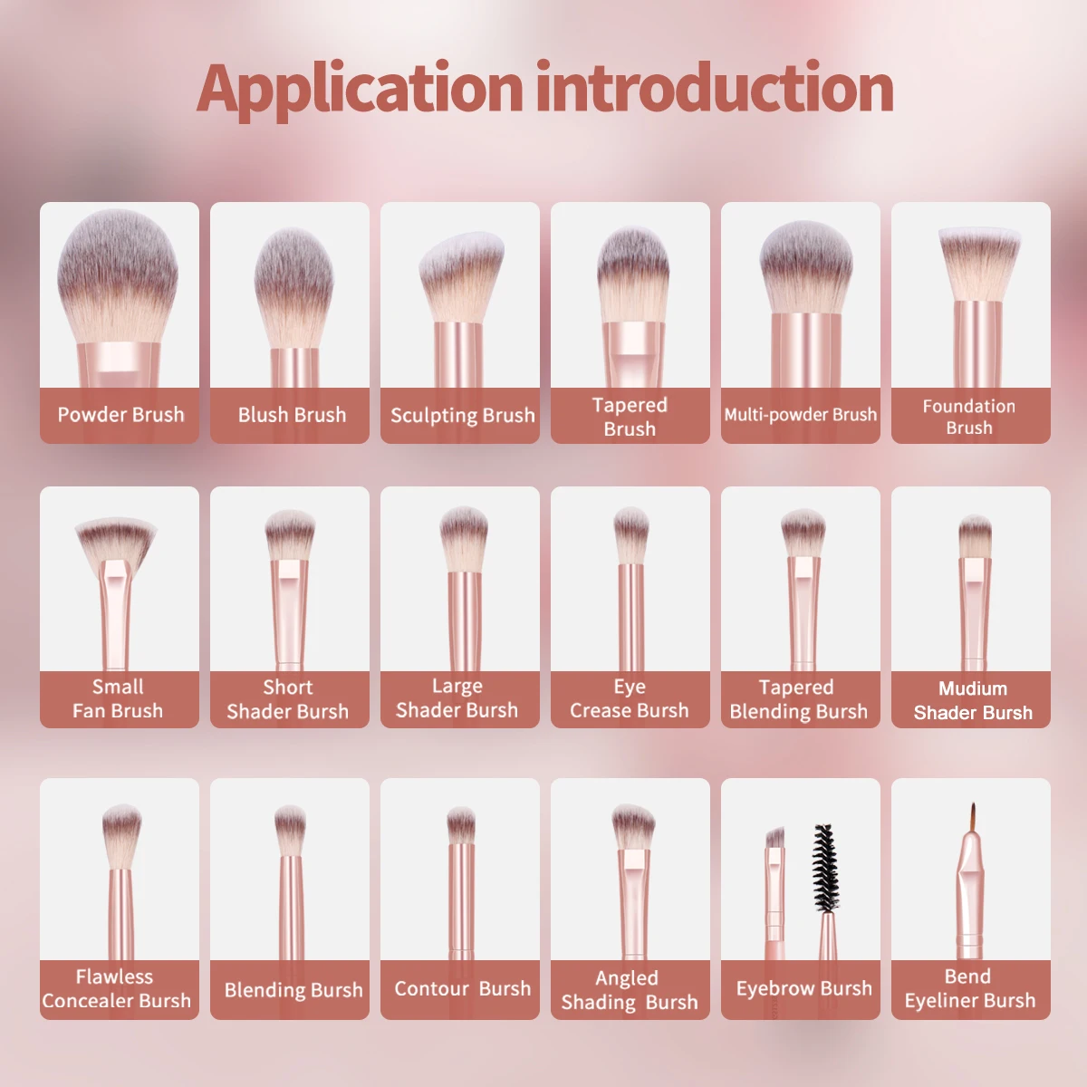 Este kit de 18 brochas te permitirá aplicar maquillaje en polvo, bases, rubor, contorno.