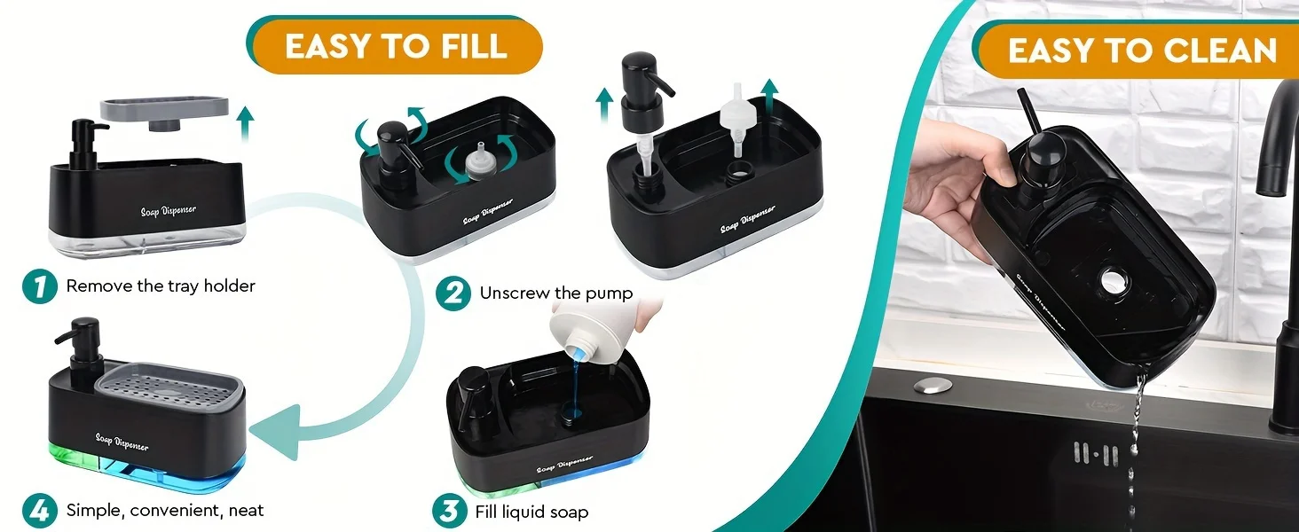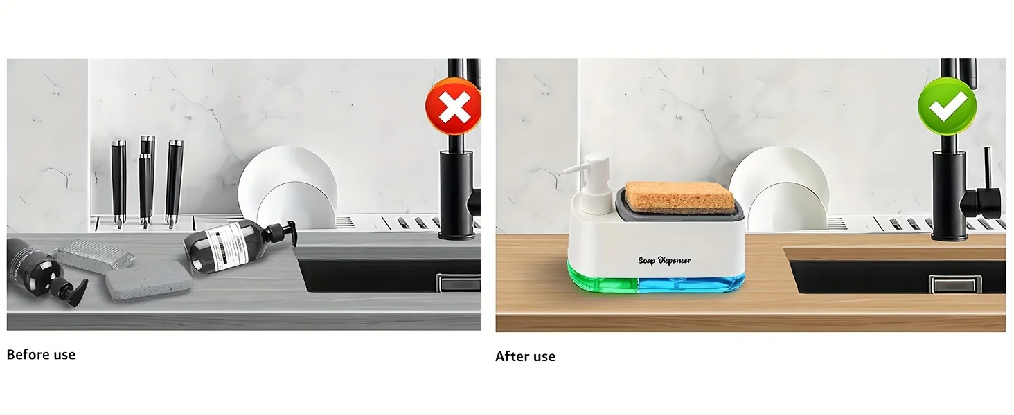 ¡Dile adiós al desorden y mejora tu experiencia de lavado con nuestro Dispensador de Jabón Líquido para Cocina 2 en 1
